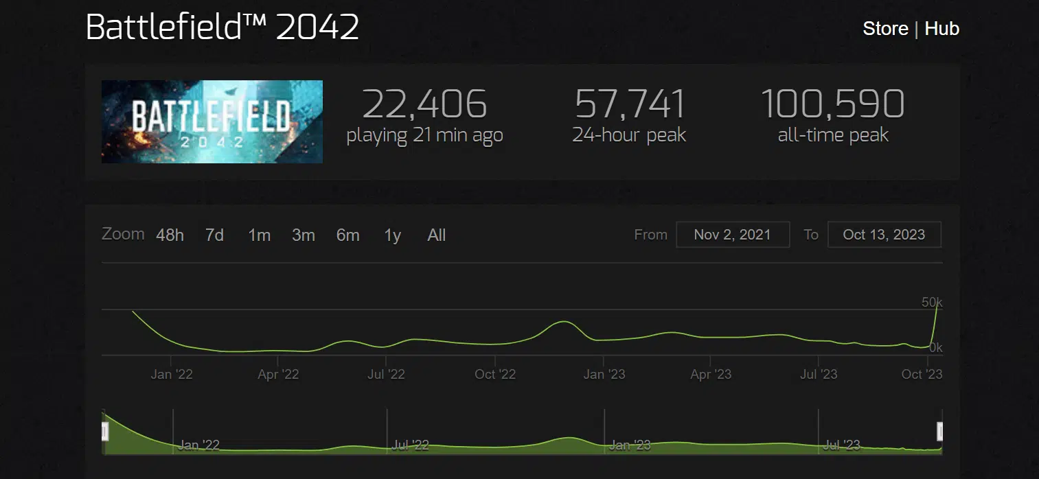 Seit dem Start der sechsten Season von Battlefield 2042 letzte Woche ist der Titel auf Steam so aktiv wie nie zuvor. Besonders der gestern gestartete Free-Access-Trailer hat für einen regelrechten Ansturm neuer Spieler gesorgt. Dabei hat Battlefield 2042 sogar die Zahlen des vorherigen Free-Access-Titels übertroffen und zählt somit zu den beliebtesten Spielen seit seinem Launch vor zwei Jahren. Beachtlich ist dabei, dass diese Zahlen sich ausschließlich auf die PC-Spieler beziehen und die Spielerzahlen von PS4, PS5, Xbox One und Xbox Series X|S noch nicht einmal mit einbeziehen. Es ist also anzunehmen, dass die tatsächliche Spielerzahl noch deutlich höher ist.