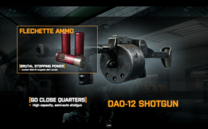 Die DAO-12 Schrotflinte ist eine tödliche Waffe auf kurze Distanzen. Mit der enthaltenen Flechette-Munition kannst du auch auf größere Entfernung noch effektiv kämpfen. Eine perfekte Wahl für Nahkämpfe in engen Gebieten.