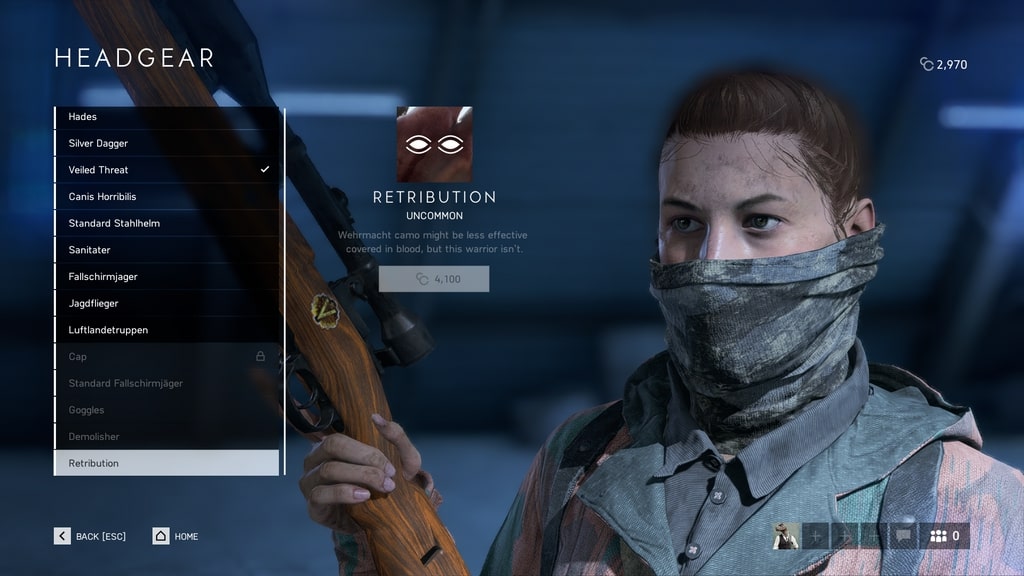 Die neue Kopfbedeckung namens „Retribution“ ist für 4.100 Company Coins erhältlich (laut Reddit-User Husar). Sie ist eine willkommene Ergänzung zu den bereits vorhandenen Kopfbedeckungen in Battlefield V.