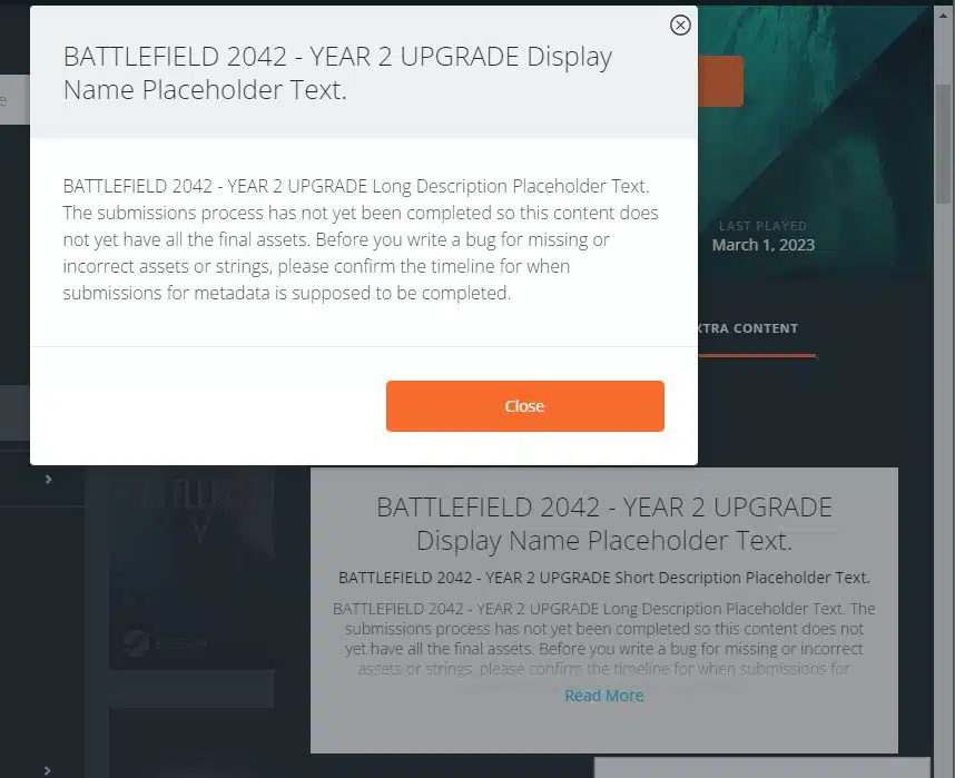 Der Finder MPThLee erwähnte, dass er sowohl BF2042 auf Steam als auch auf Origin hat und das „Year 2 Upgrade“ für beide Versionen angezeigt wird. Außerdem sagte er: „Ich habe versucht, die EA-App mit einigen XML-Hacks auf Origin herunterzustufen. (Danke an den Fehler ‚Oh Snap, It Crashed‘) Und mir war langweilig, also habe ich versucht, die Seite ‚Zusätzliche Inhalte‘ in der Steam-Version von BF2042 auf Origin zu überprüfen. Und das kam heraus.“