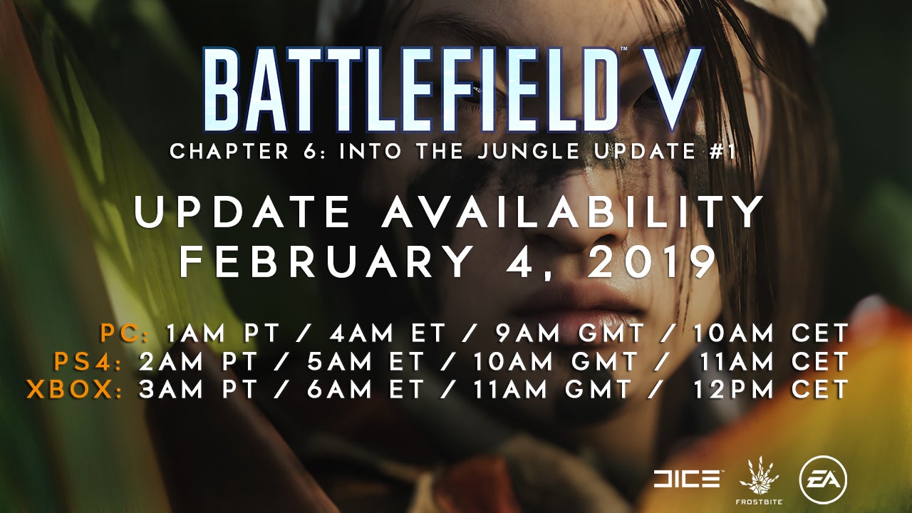 Am 4. Februar bringt DICE das erste Update für Battlefield V im Jahr 2020 heraus. Das Update 6.0 enthält zahlreiche neue Inhalte, um das Tides of War Kapitel 6 „Into the Jungle“ einzuleiten und Gameplay-Änderungen vorzunehmen.