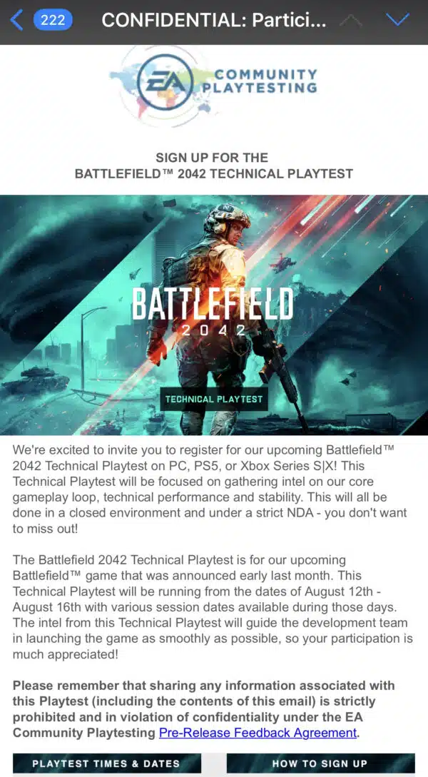 Hallo Battlefield-Fans! Seid ihr bereit für den technischen Playtest von Battlefield 2042? Dann schaut unbedingt in eure E-Mails! Denn EA hat heute angekündigt, dass die Einladungen für den Playtest verschickt werden! Bitte beachtet, dass es sich um einen begrenzten Spielerpool handelt und nicht jeder eine Einladung erhalten wird.