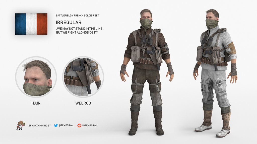 Du bist auf der Suche nach neuen Skin-Sets für deine französischen Soldaten in Battlefield 5? Dann haben wir gute Neuigkeiten für dich! Dank des Battlefield 5-Dataminers Temporyal können wir dir nun das komplette „Irregular“-Skin-Set präsentieren.